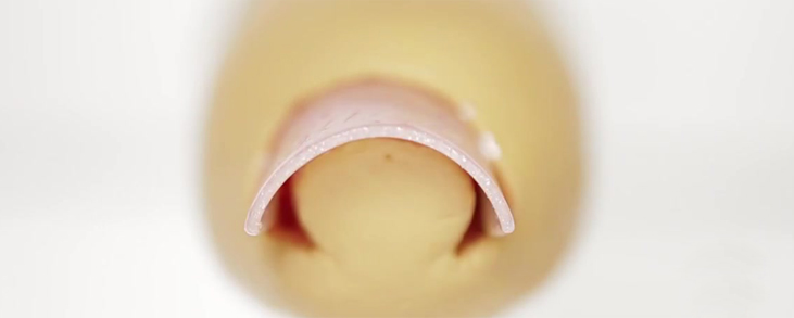 巻き爪ロボは、短時間で巻き爪を矯正することができますが、変形の大きい方は、爪を広げたとき爪と肉の間に大きな「すき間」ができる場合があります。肉が盛り上がってくるまでの期間、爪は肉の支えがなく外圧を受けることになるため、元の変形状態に戻りやすくなります。